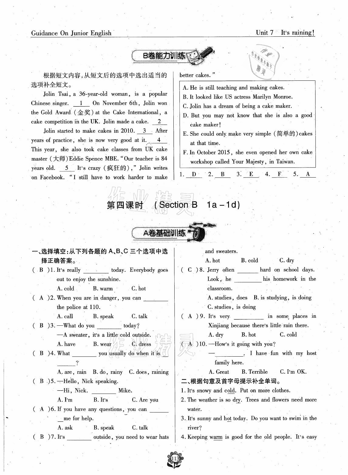注:目前有些书本章节名称可能整理的还不是很完善,但都是按照顺序排列的,请同学们按照顺序仔细查找。练习册 2021年英语风向标七年级下册蓉城专版 答案主要是用来给同学们做完题方便对答案用的,请勿直接抄袭。