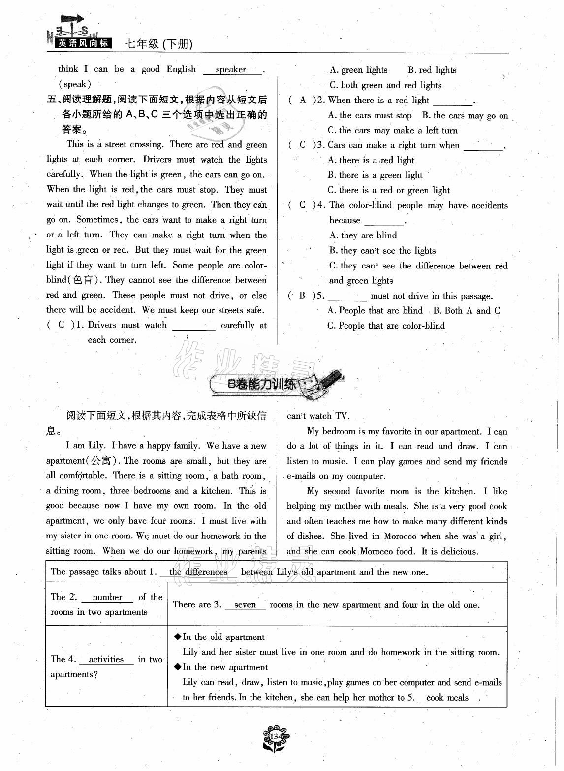 注:目前有些书本章节名称可能整理的还不是很完善,但都是按照顺序排列的,请同学们按照顺序仔细查找。练习册 2021年英语风向标七年级下册蓉城专版 答案主要是用来给同学们做完题方便对答案用的,请勿直接抄袭。