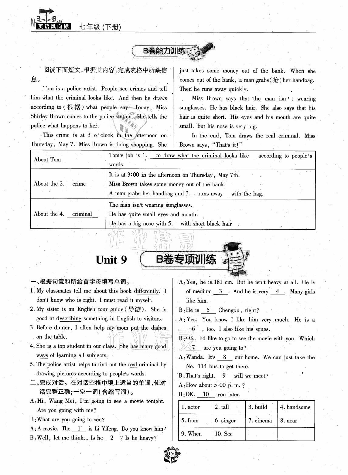 注:目前有些书本章节名称可能整理的还不是很完善,但都是按照顺序排列的,请同学们按照顺序仔细查找。练习册 2021年英语风向标七年级下册蓉城专版 答案主要是用来给同学们做完题方便对答案用的,请勿直接抄袭。