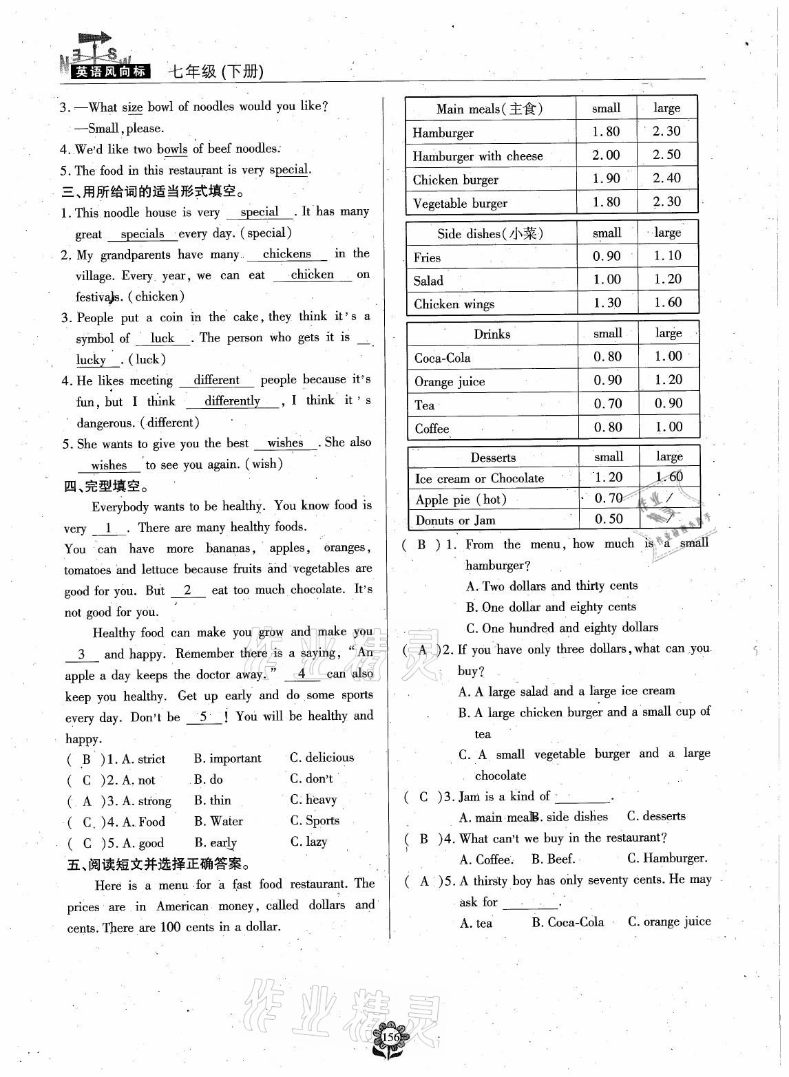 注:目前有些书本章节名称可能整理的还不是很完善,但都是按照顺序排列的,请同学们按照顺序仔细查找。练习册 2021年英语风向标七年级下册蓉城专版 答案主要是用来给同学们做完题方便对答案用的,请勿直接抄袭。