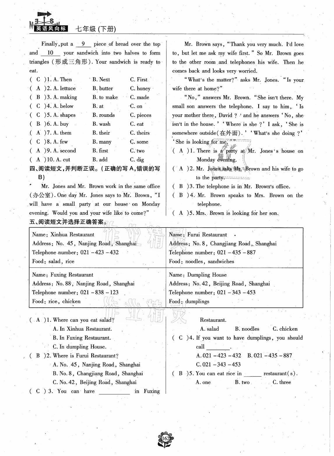 注:目前有些书本章节名称可能整理的还不是很完善,但都是按照顺序排列的,请同学们按照顺序仔细查找。练习册 2021年英语风向标七年级下册蓉城专版 答案主要是用来给同学们做完题方便对答案用的,请勿直接抄袭。
