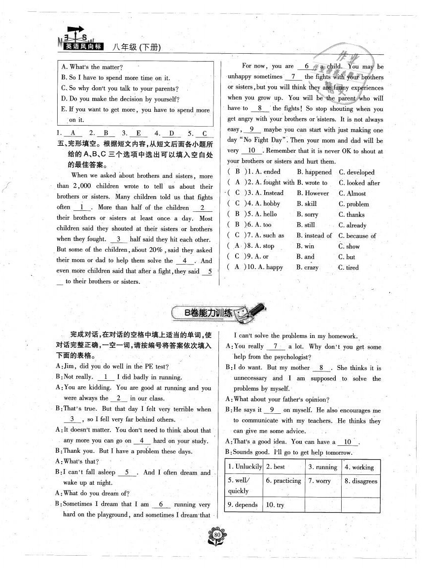 注:目前有些书本章节名称可能整理的还不是很完善,但都是按照顺序排列的,请同学们按照顺序仔细查找。练习册 2021年英语风向标八年级下册蓉城专版 答案主要是用来给同学们做完题方便对答案用的,请勿直接抄袭。
