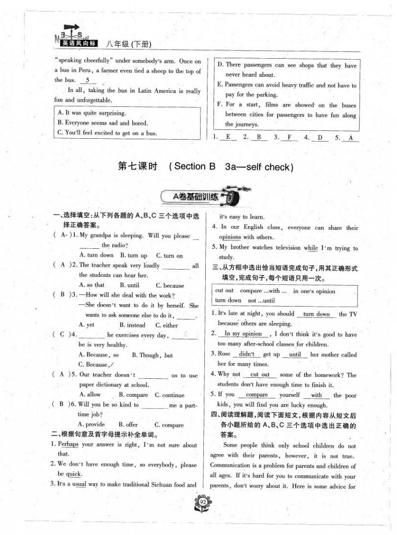 注:目前有些书本章节名称可能整理的还不是很完善,但都是按照顺序排列的,请同学们按照顺序仔细查找。练习册 2021年英语风向标八年级下册蓉城专版 答案主要是用来给同学们做完题方便对答案用的,请勿直接抄袭。