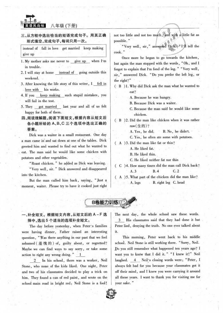 注:目前有些书本章节名称可能整理的还不是很完善,但都是按照顺序排列的,请同学们按照顺序仔细查找。练习册 2021年英语风向标八年级下册蓉城专版 答案主要是用来给同学们做完题方便对答案用的,请勿直接抄袭。