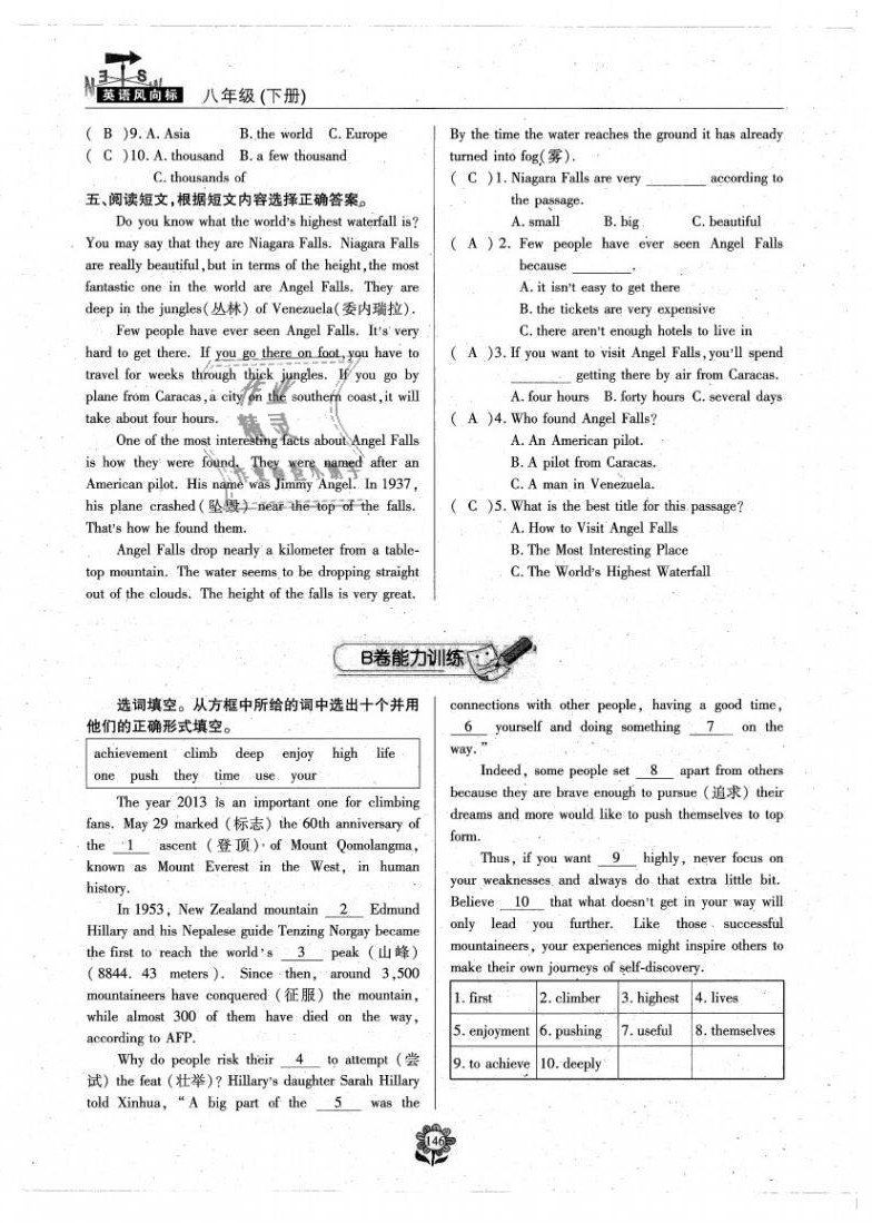 注:目前有些书本章节名称可能整理的还不是很完善,但都是按照顺序排列的,请同学们按照顺序仔细查找。练习册 2021年英语风向标八年级下册蓉城专版 答案主要是用来给同学们做完题方便对答案用的,请勿直接抄袭。