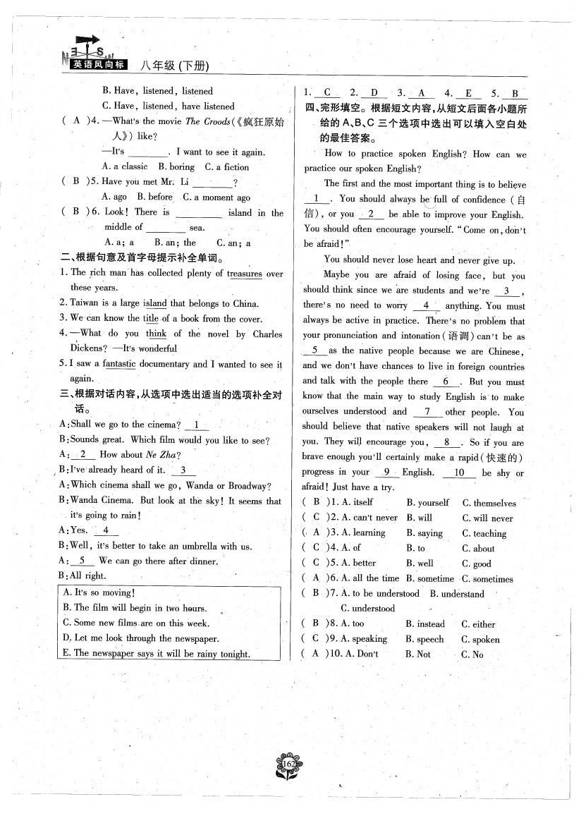 注:目前有些书本章节名称可能整理的还不是很完善,但都是按照顺序排列的,请同学们按照顺序仔细查找。练习册 2021年英语风向标八年级下册蓉城专版 答案主要是用来给同学们做完题方便对答案用的,请勿直接抄袭。