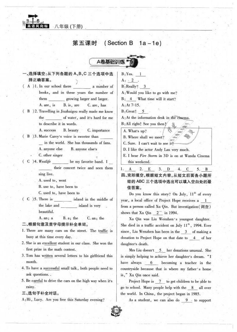 注:目前有些书本章节名称可能整理的还不是很完善,但都是按照顺序排列的,请同学们按照顺序仔细查找。练习册 2021年英语风向标八年级下册蓉城专版 答案主要是用来给同学们做完题方便对答案用的,请勿直接抄袭。