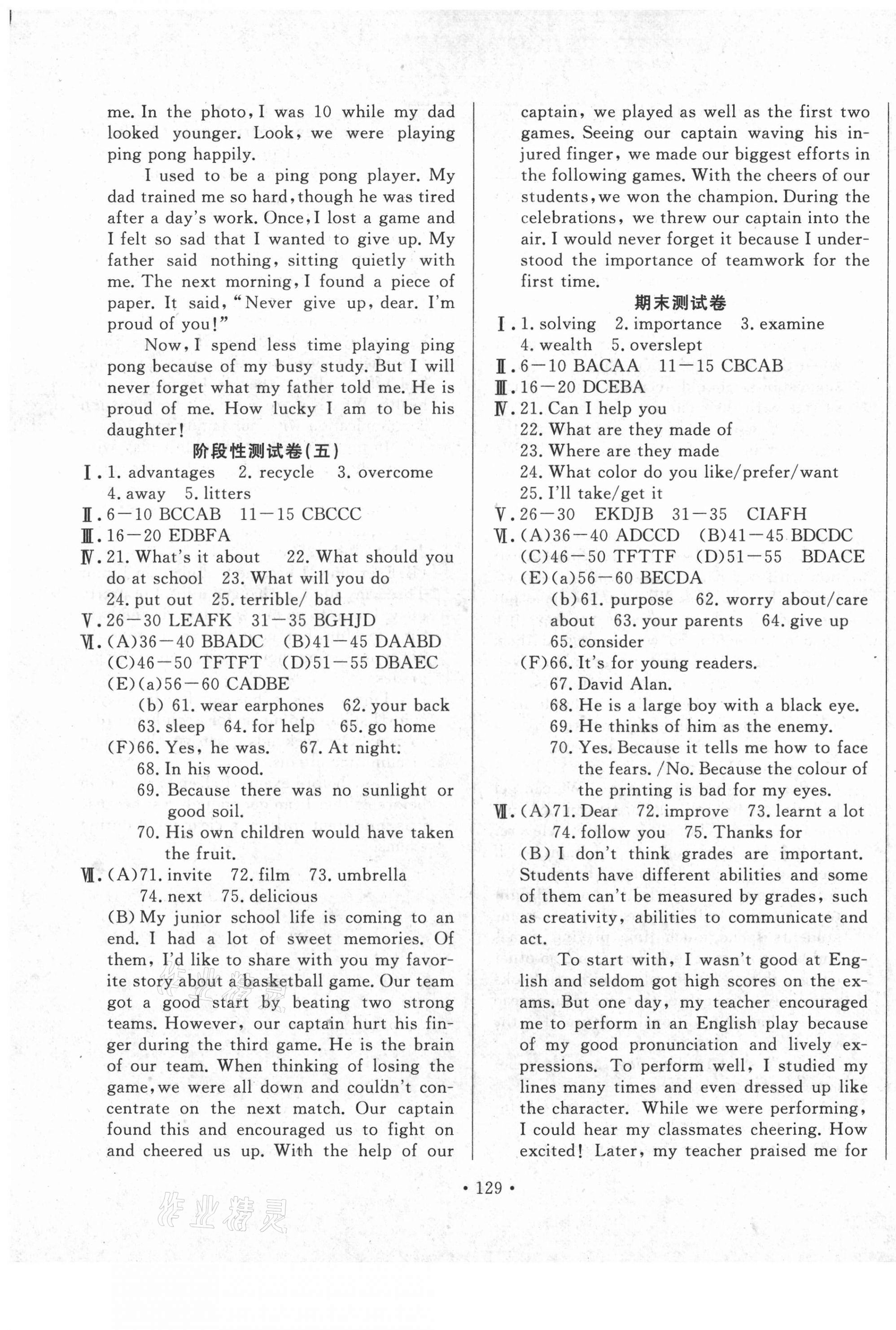 注:目前有些书本章节名称可能整理的还不是很完善,但都是按照顺序排列的,请同学们按照顺序仔细查找。练习册 2021年名校调研跟踪测试卷九年级英语下册人教版 答案主要是用来给同学们做完题方便对答案用的,请勿直接抄袭。
