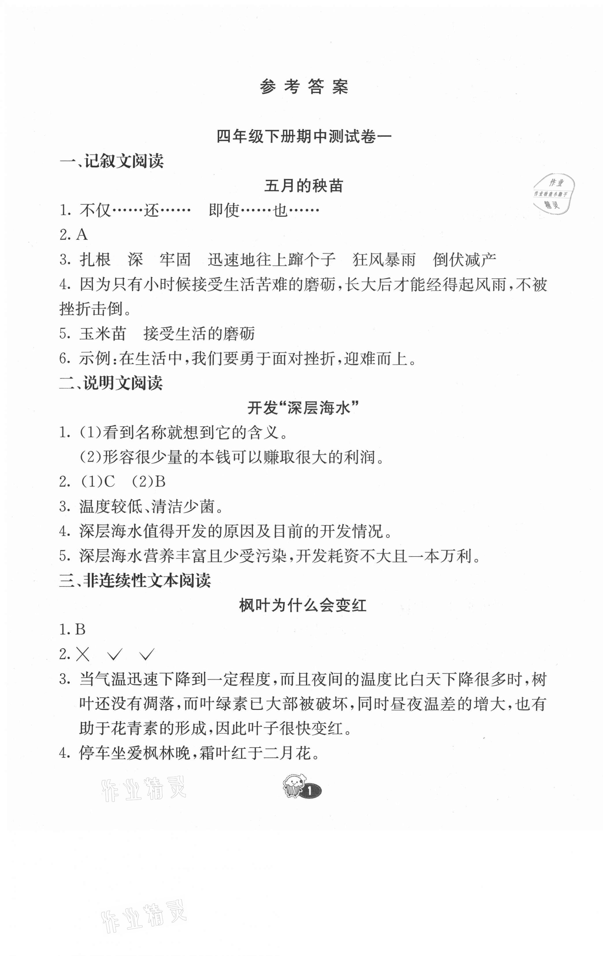 注:目前有些书本章节名称可能整理的还不是很完善,但都是按照顺序排列的,请同学们按照顺序仔细查找。练习册 2021年七彩阅读四年级下册人教版 答案主要是用来给同学们做完题方便对答案用的,请勿直接抄袭。