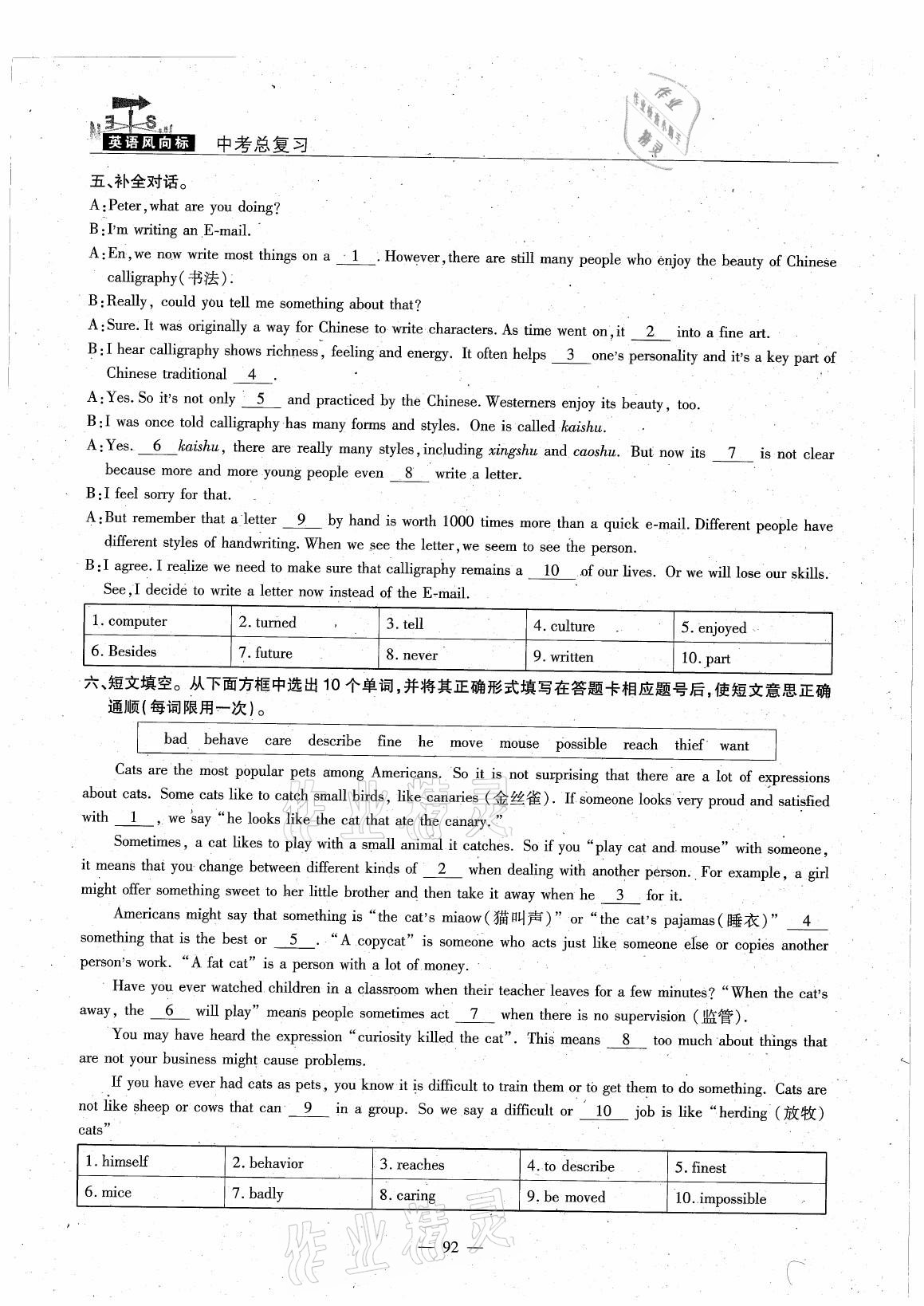 注:目前有些书本章节名称可能整理的还不是很完善,但都是按照顺序排列的,请同学们按照顺序仔细查找。练习册 2021年英语风向标中考总复习 答案主要是用来给同学们做完题方便对答案用的,请勿直接抄袭。