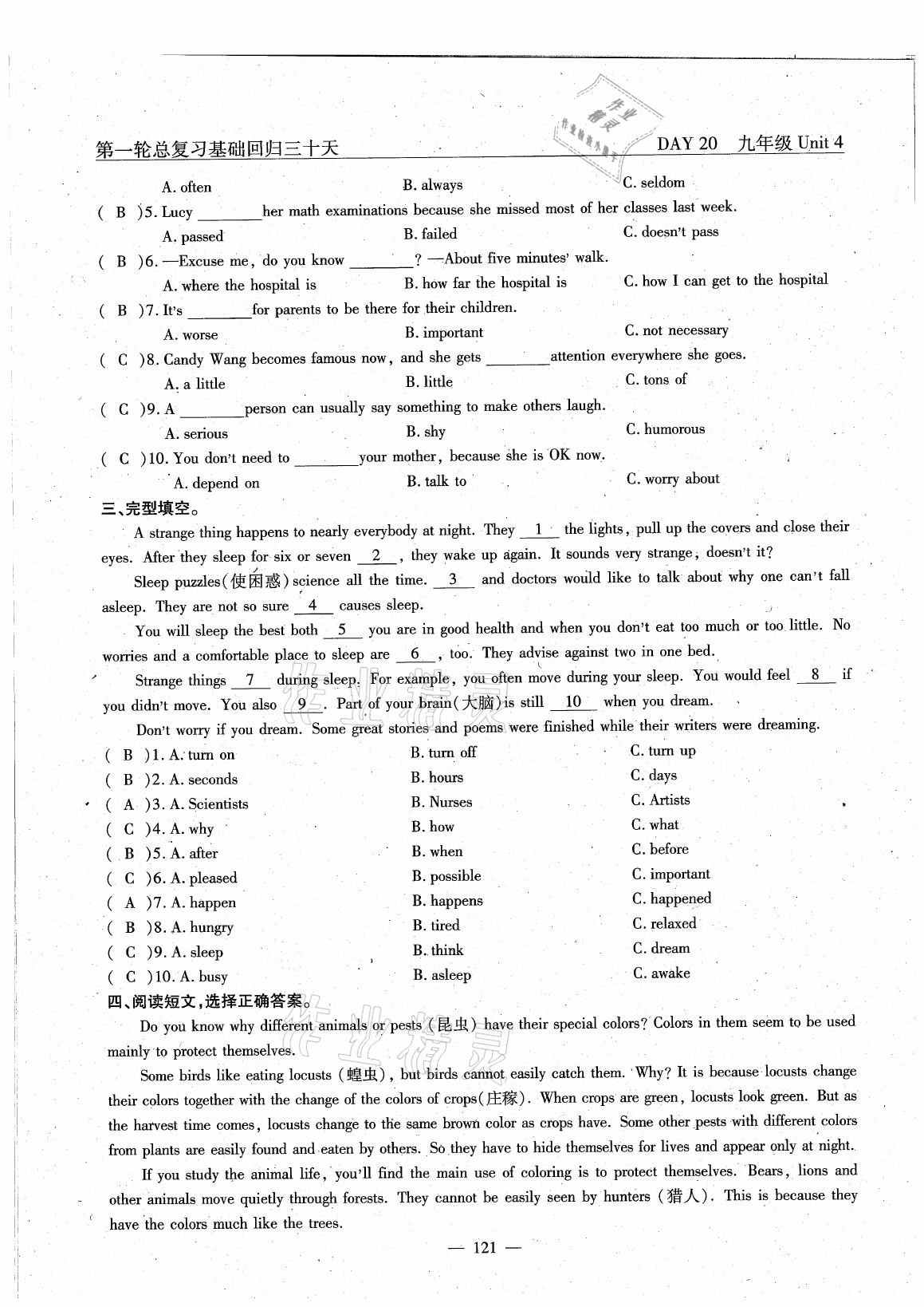 注:目前有些书本章节名称可能整理的还不是很完善,但都是按照顺序排列的,请同学们按照顺序仔细查找。练习册 2021年英语风向标中考总复习 答案主要是用来给同学们做完题方便对答案用的,请勿直接抄袭。