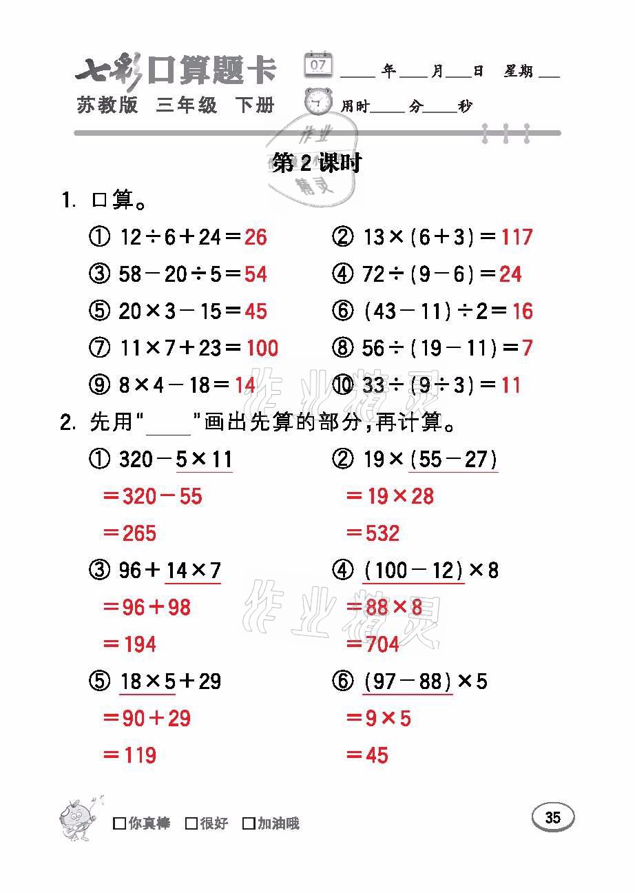 注:目前有些书本章节名称可能整理的还不是很完善,但都是按照顺序排列的,请同学们按照顺序仔细查找。练习册 2021年七彩口算题卡三年级数学下册苏教版 答案主要是用来给同学们做完题方便对答案用的,请勿直接抄袭。