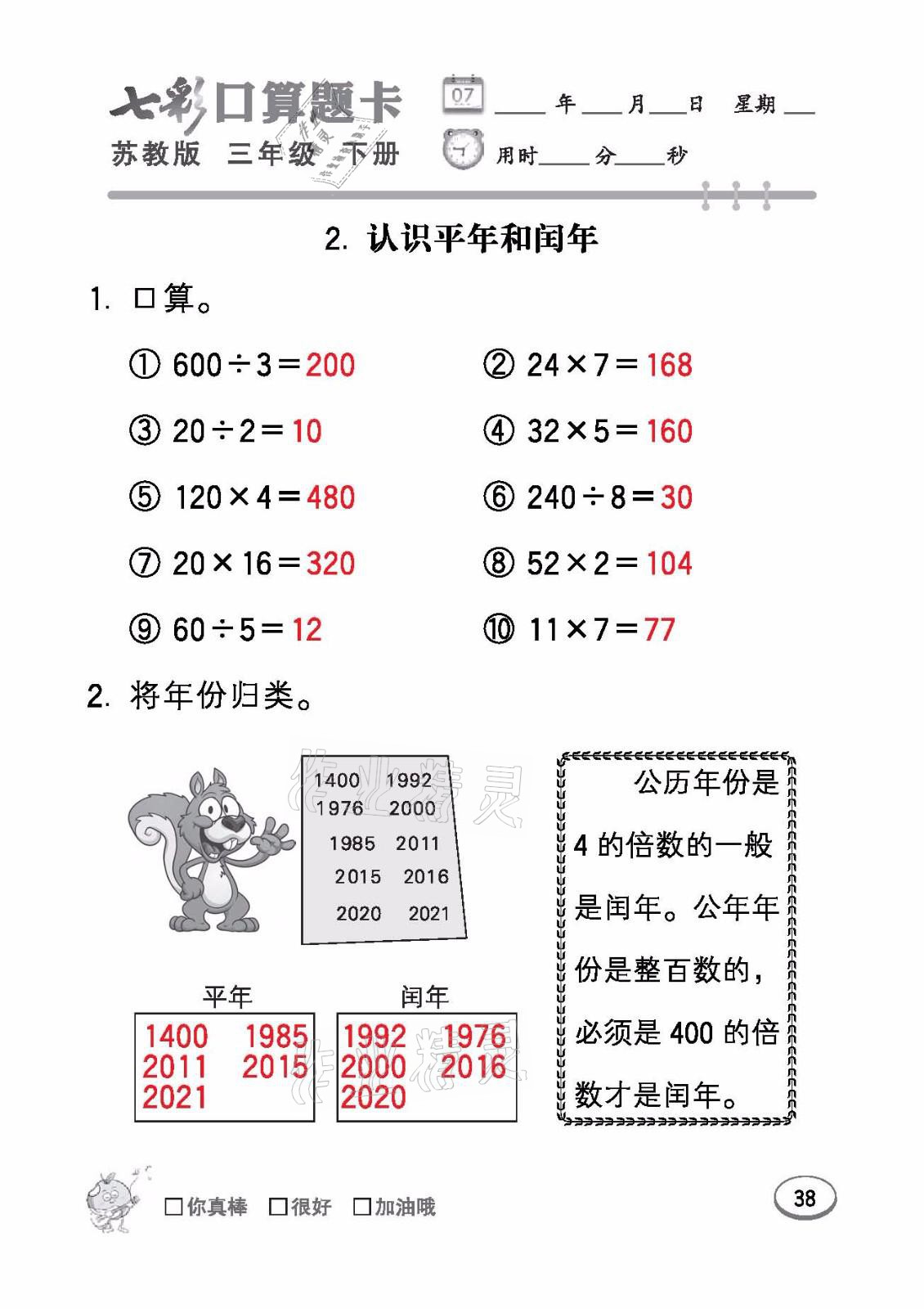 注:目前有些书本章节名称可能整理的还不是很完善,但都是按照顺序排列的,请同学们按照顺序仔细查找。练习册 2021年七彩口算题卡三年级数学下册苏教版 答案主要是用来给同学们做完题方便对答案用的,请勿直接抄袭。