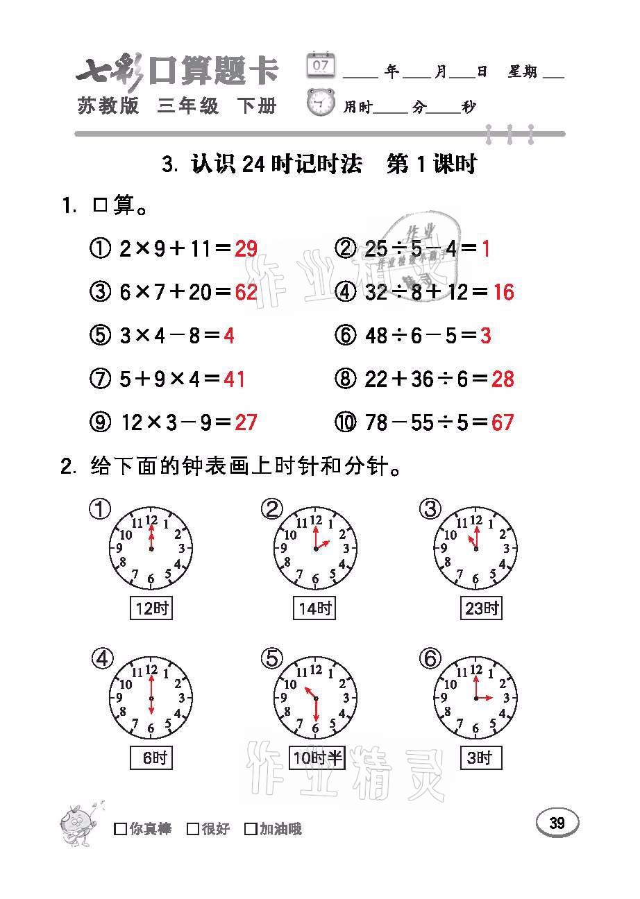 注:目前有些书本章节名称可能整理的还不是很完善,但都是按照顺序排列的,请同学们按照顺序仔细查找。练习册 2021年七彩口算题卡三年级数学下册苏教版 答案主要是用来给同学们做完题方便对答案用的,请勿直接抄袭。