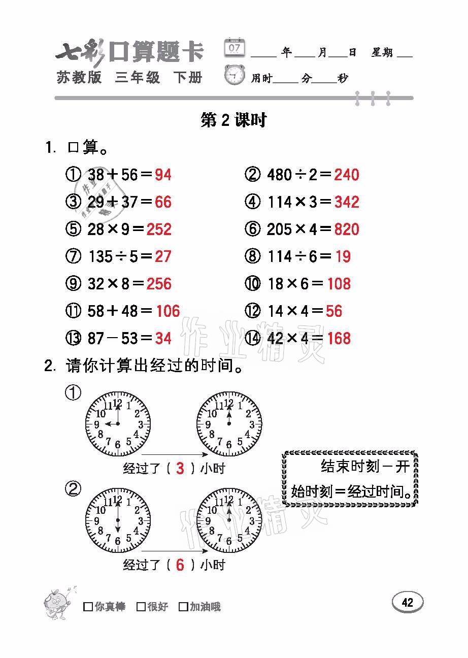 注:目前有些书本章节名称可能整理的还不是很完善,但都是按照顺序排列的,请同学们按照顺序仔细查找。练习册 2021年七彩口算题卡三年级数学下册苏教版 答案主要是用来给同学们做完题方便对答案用的,请勿直接抄袭。