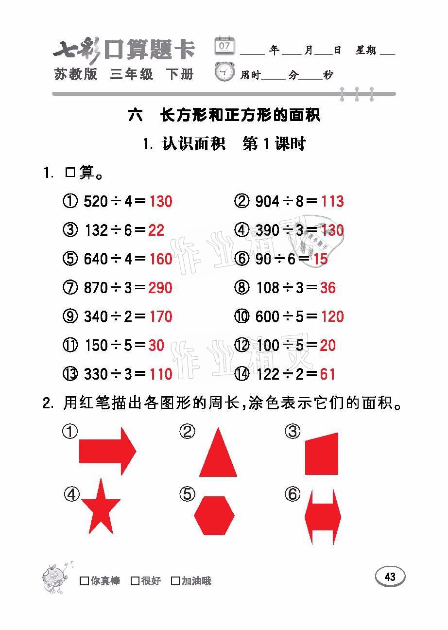 注:目前有些书本章节名称可能整理的还不是很完善,但都是按照顺序排列的,请同学们按照顺序仔细查找。练习册 2021年七彩口算题卡三年级数学下册苏教版 答案主要是用来给同学们做完题方便对答案用的,请勿直接抄袭。