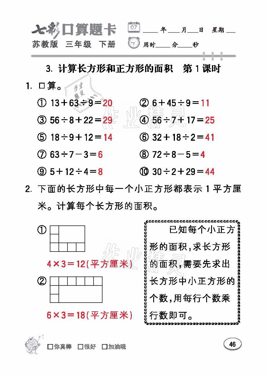 注:目前有些书本章节名称可能整理的还不是很完善,但都是按照顺序排列的,请同学们按照顺序仔细查找。练习册 2021年七彩口算题卡三年级数学下册苏教版 答案主要是用来给同学们做完题方便对答案用的,请勿直接抄袭。