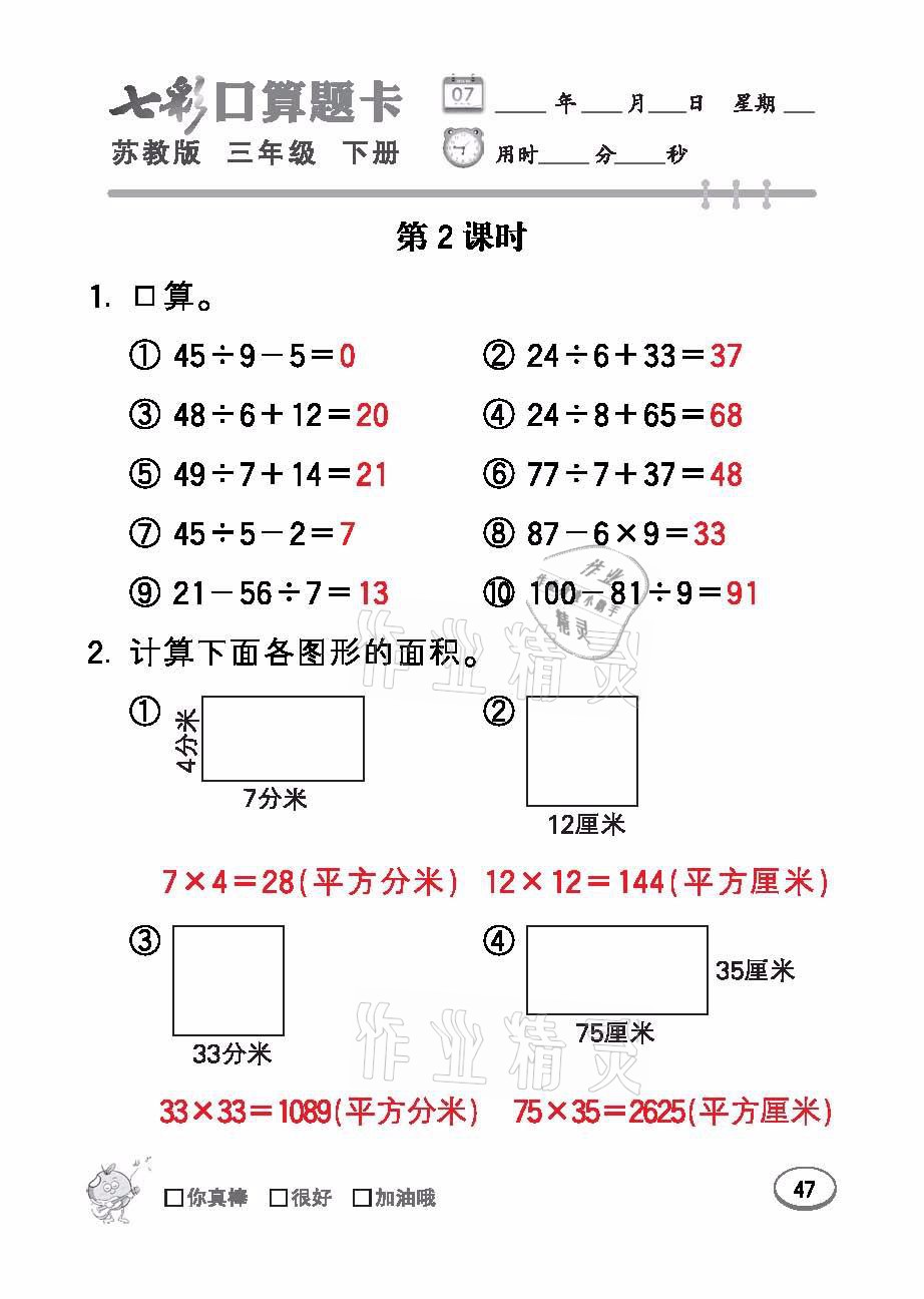 注:目前有些书本章节名称可能整理的还不是很完善,但都是按照顺序排列的,请同学们按照顺序仔细查找。练习册 2021年七彩口算题卡三年级数学下册苏教版 答案主要是用来给同学们做完题方便对答案用的,请勿直接抄袭。