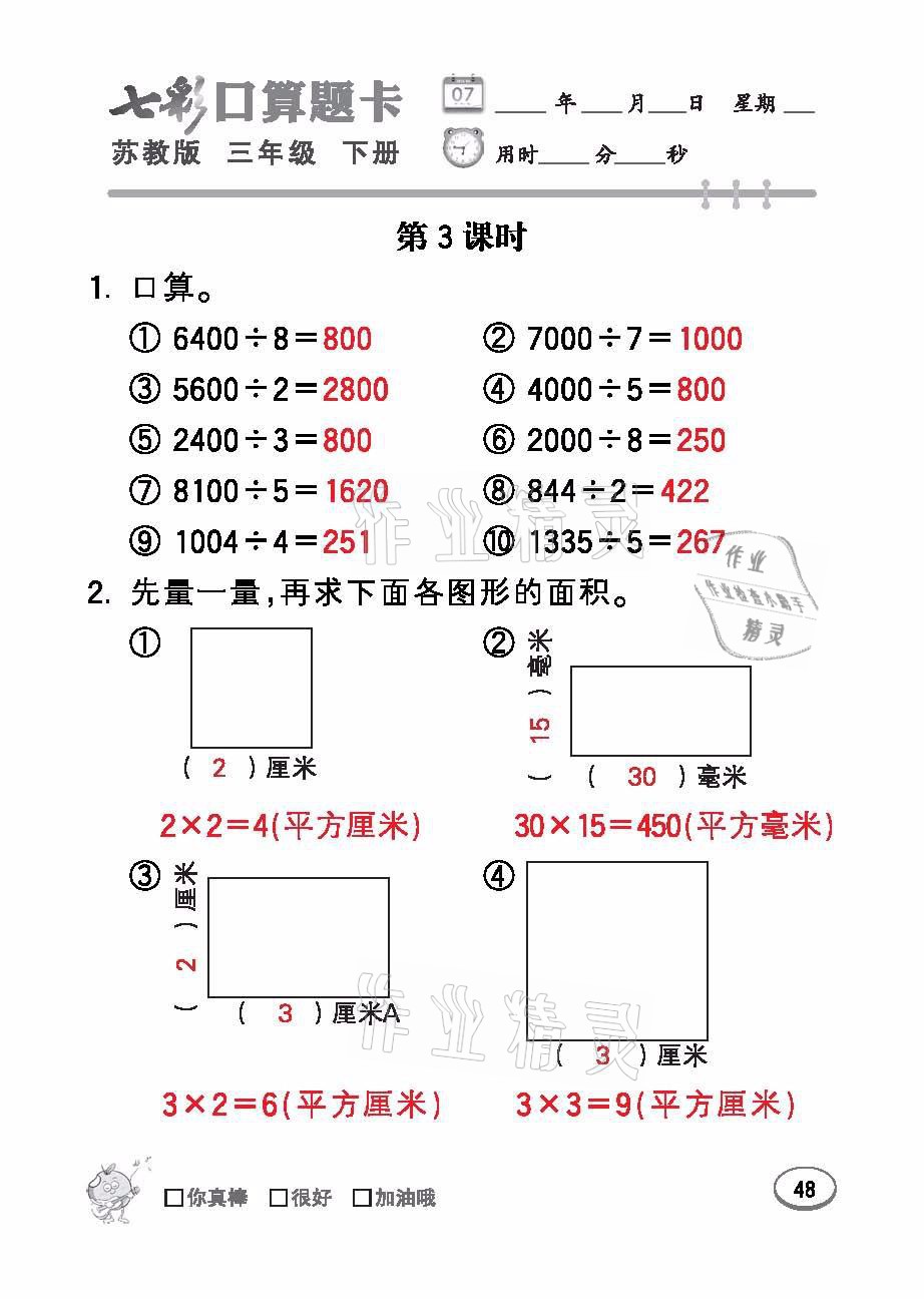 注:目前有些书本章节名称可能整理的还不是很完善,但都是按照顺序排列的,请同学们按照顺序仔细查找。练习册 2021年七彩口算题卡三年级数学下册苏教版 答案主要是用来给同学们做完题方便对答案用的,请勿直接抄袭。