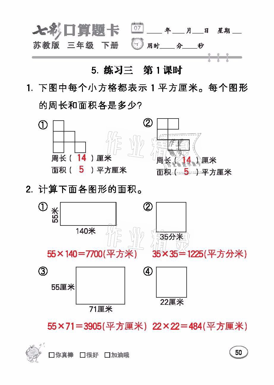 注:目前有些书本章节名称可能整理的还不是很完善,但都是按照顺序排列的,请同学们按照顺序仔细查找。练习册 2021年七彩口算题卡三年级数学下册苏教版 答案主要是用来给同学们做完题方便对答案用的,请勿直接抄袭。