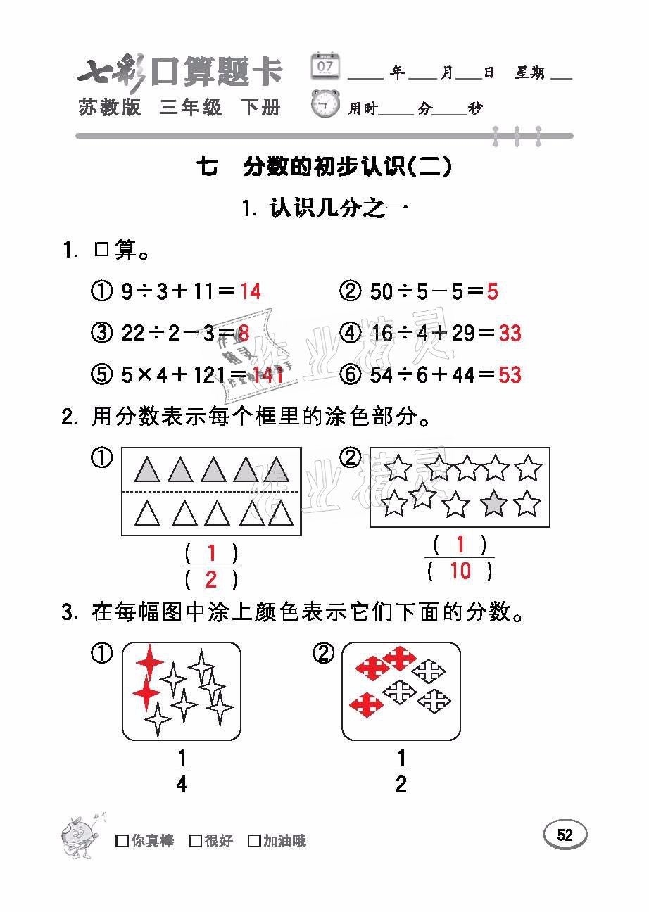注:目前有些书本章节名称可能整理的还不是很完善,但都是按照顺序排列的,请同学们按照顺序仔细查找。练习册 2021年七彩口算题卡三年级数学下册苏教版 答案主要是用来给同学们做完题方便对答案用的,请勿直接抄袭。