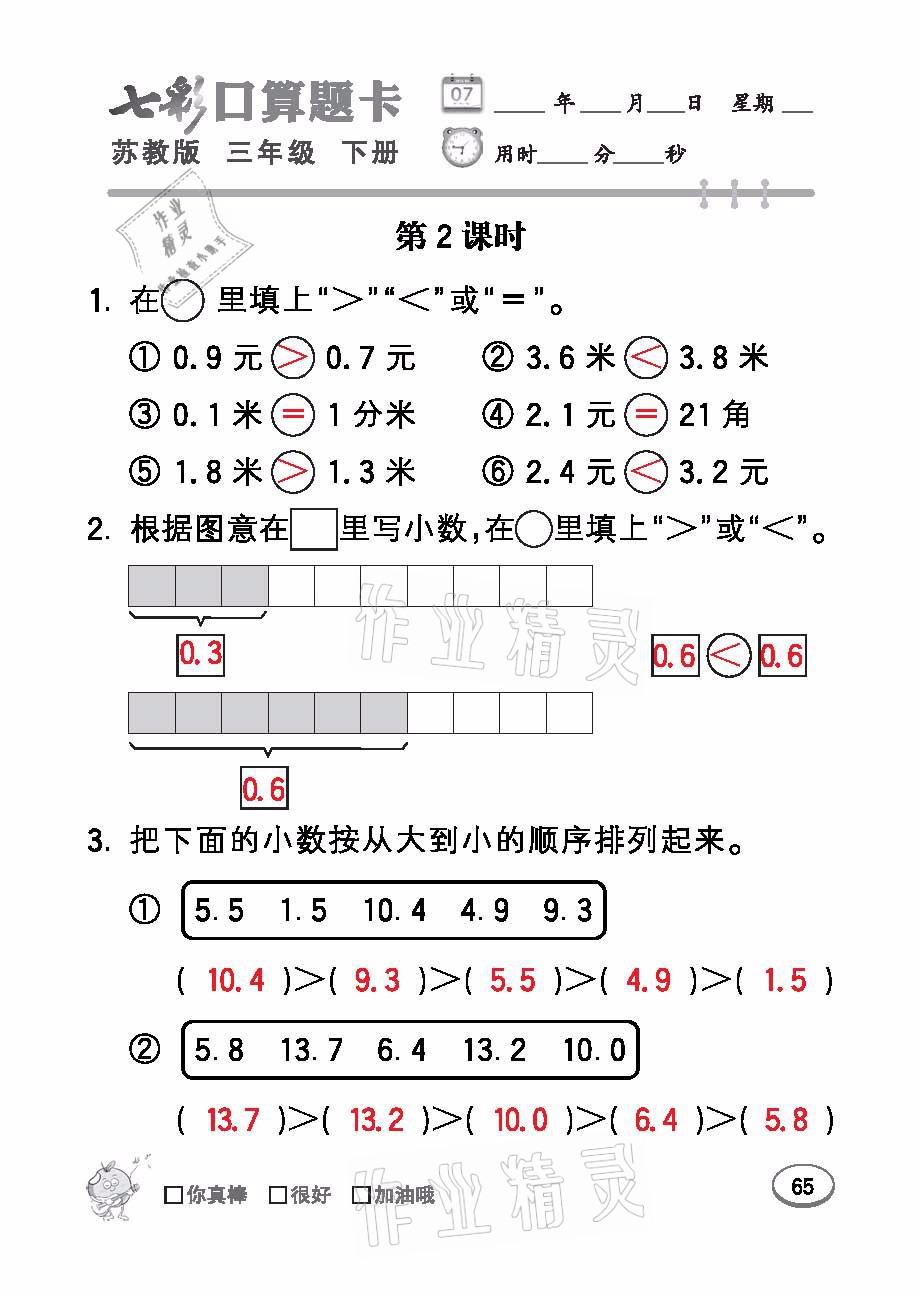 注:目前有些书本章节名称可能整理的还不是很完善,但都是按照顺序排列的,请同学们按照顺序仔细查找。练习册 2021年七彩口算题卡三年级数学下册苏教版 答案主要是用来给同学们做完题方便对答案用的,请勿直接抄袭。