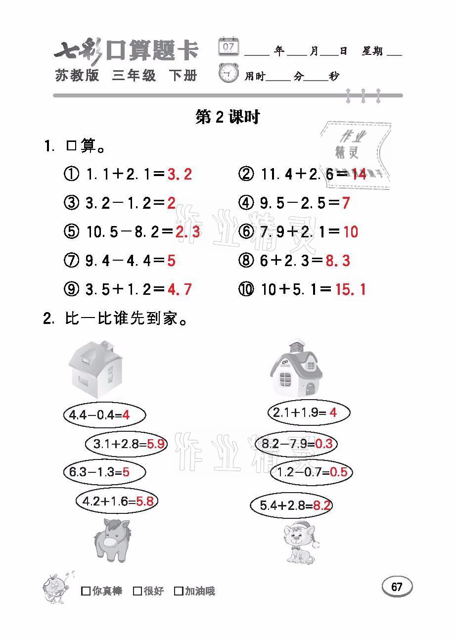 注:目前有些书本章节名称可能整理的还不是很完善,但都是按照顺序排列的,请同学们按照顺序仔细查找。练习册 2021年七彩口算题卡三年级数学下册苏教版 答案主要是用来给同学们做完题方便对答案用的,请勿直接抄袭。
