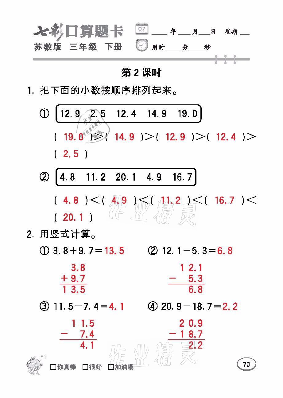 注:目前有些书本章节名称可能整理的还不是很完善,但都是按照顺序排列的,请同学们按照顺序仔细查找。练习册 2021年七彩口算题卡三年级数学下册苏教版 答案主要是用来给同学们做完题方便对答案用的,请勿直接抄袭。