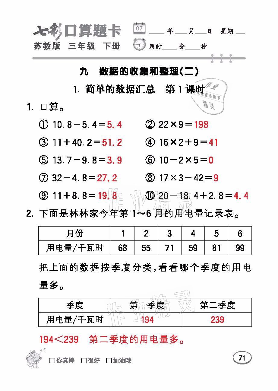 注:目前有些书本章节名称可能整理的还不是很完善,但都是按照顺序排列的,请同学们按照顺序仔细查找。练习册 2021年七彩口算题卡三年级数学下册苏教版 答案主要是用来给同学们做完题方便对答案用的,请勿直接抄袭。