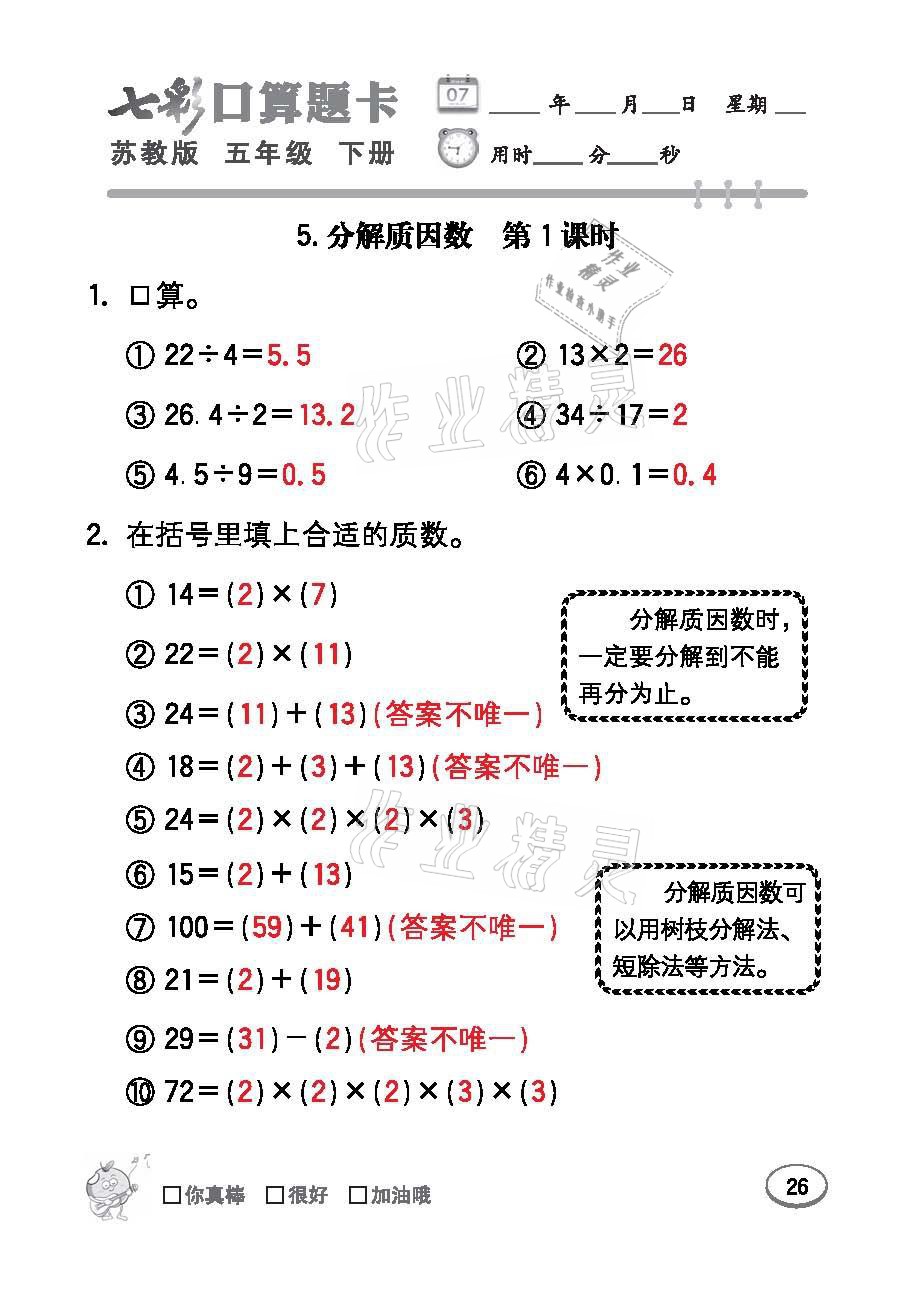 注:目前有些书本章节名称可能整理的还不是很完善,但都是按照顺序排列的,请同学们按照顺序仔细查找。练习册 2021年七彩口算题卡五年级数学下册苏教版 答案主要是用来给同学们做完题方便对答案用的,请勿直接抄袭。