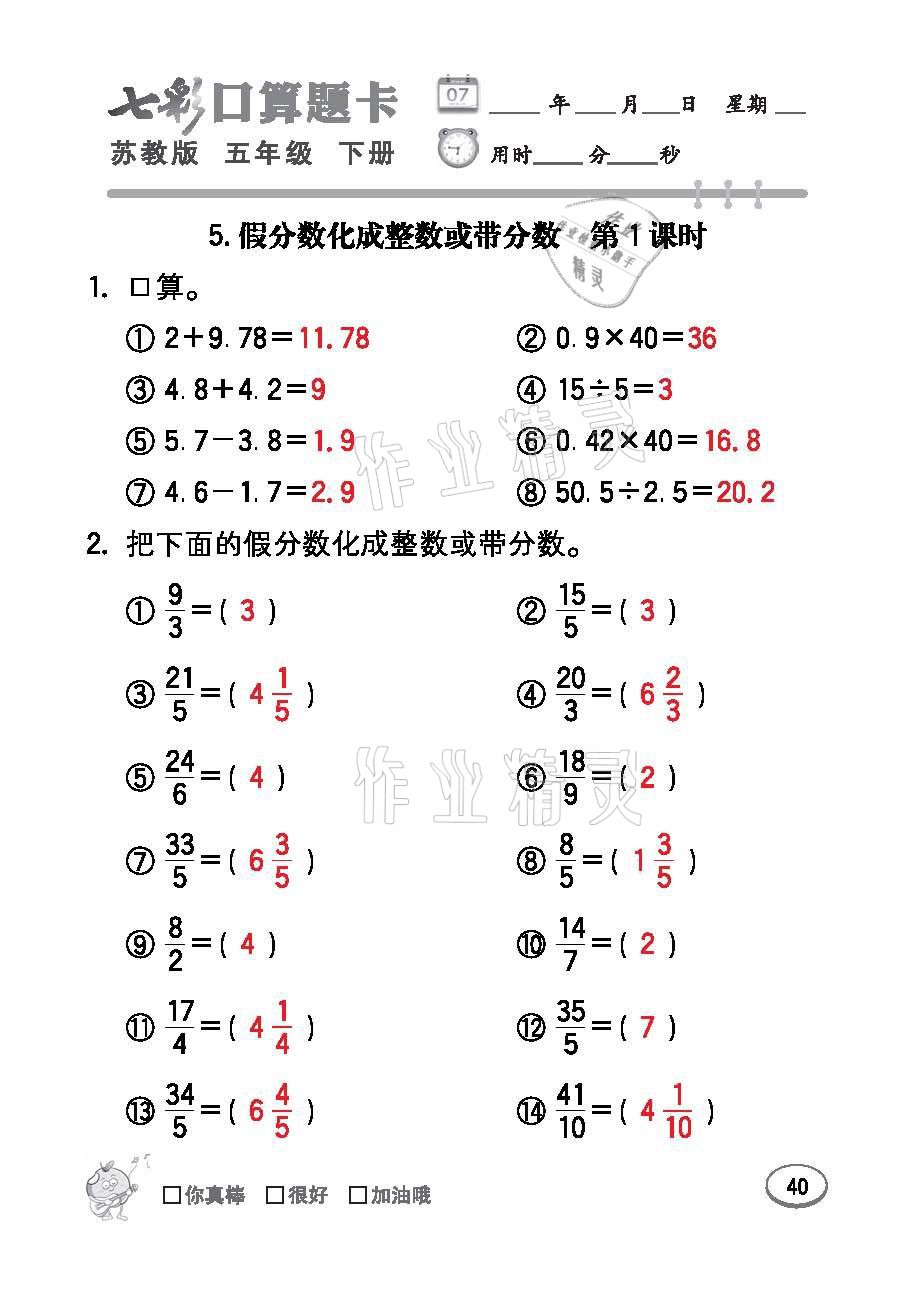 注:目前有些书本章节名称可能整理的还不是很完善,但都是按照顺序排列的,请同学们按照顺序仔细查找。练习册 2021年七彩口算题卡五年级数学下册苏教版 答案主要是用来给同学们做完题方便对答案用的,请勿直接抄袭。