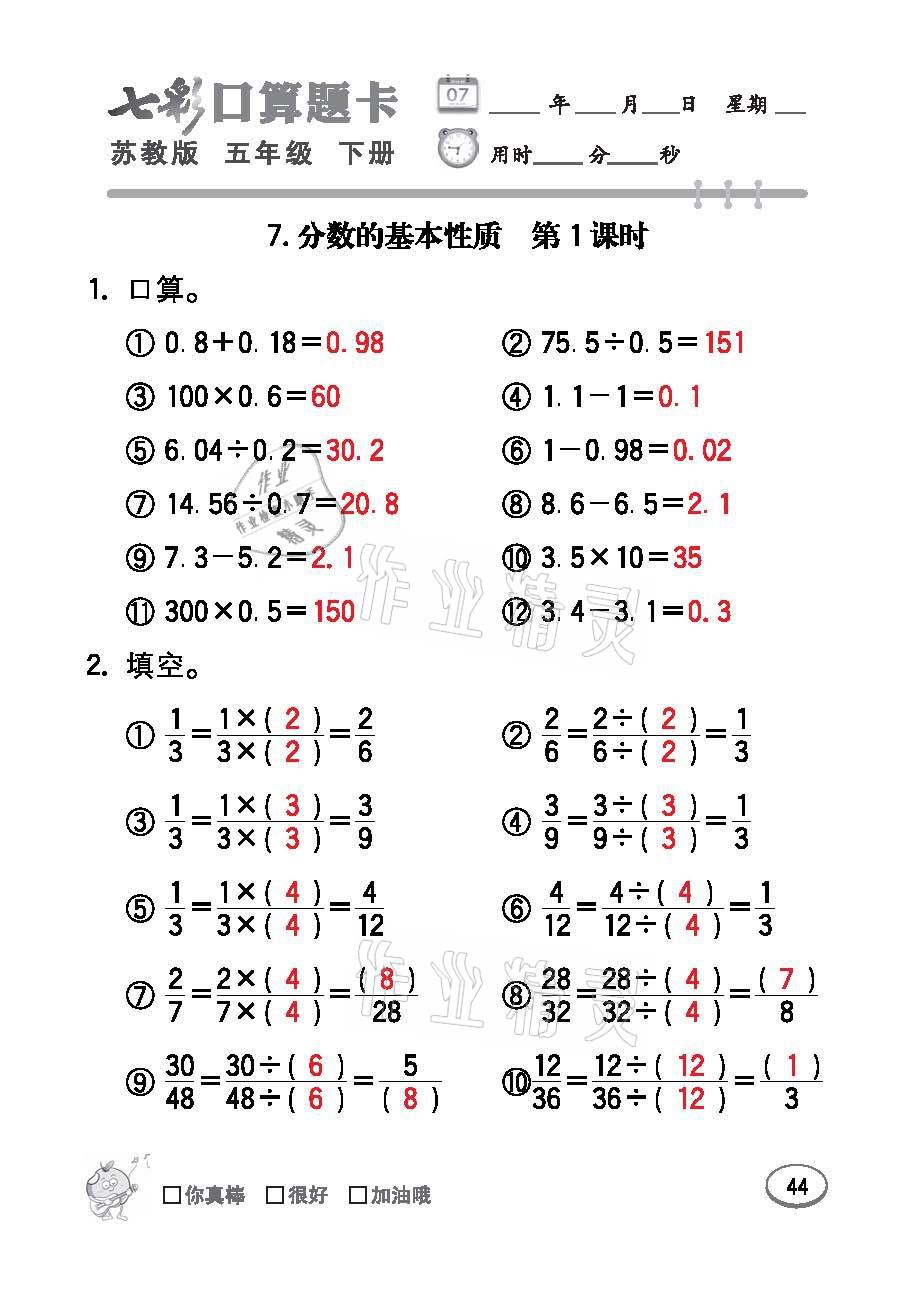 注:目前有些书本章节名称可能整理的还不是很完善,但都是按照顺序排列的,请同学们按照顺序仔细查找。练习册 2021年七彩口算题卡五年级数学下册苏教版 答案主要是用来给同学们做完题方便对答案用的,请勿直接抄袭。