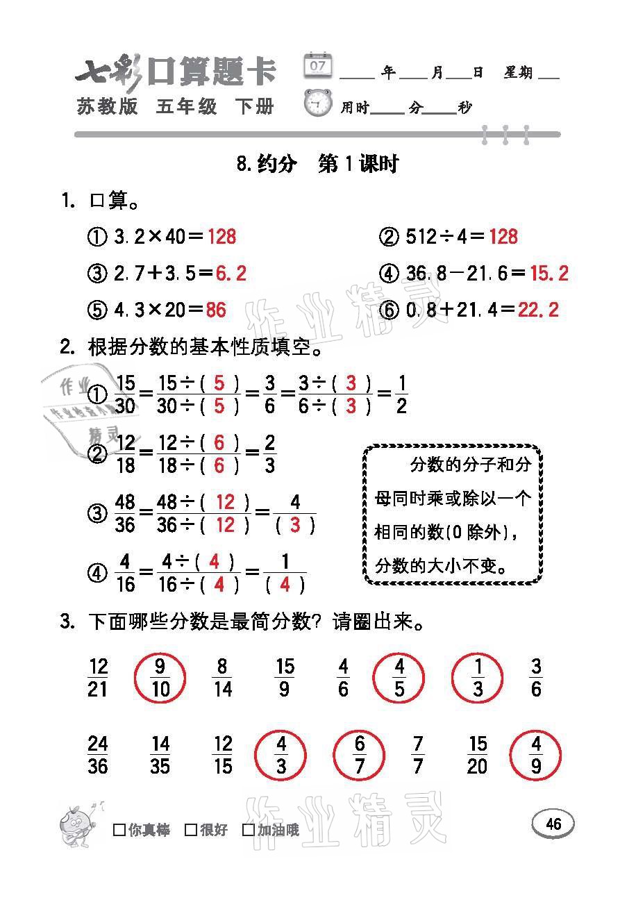 注:目前有些书本章节名称可能整理的还不是很完善,但都是按照顺序排列的,请同学们按照顺序仔细查找。练习册 2021年七彩口算题卡五年级数学下册苏教版 答案主要是用来给同学们做完题方便对答案用的,请勿直接抄袭。