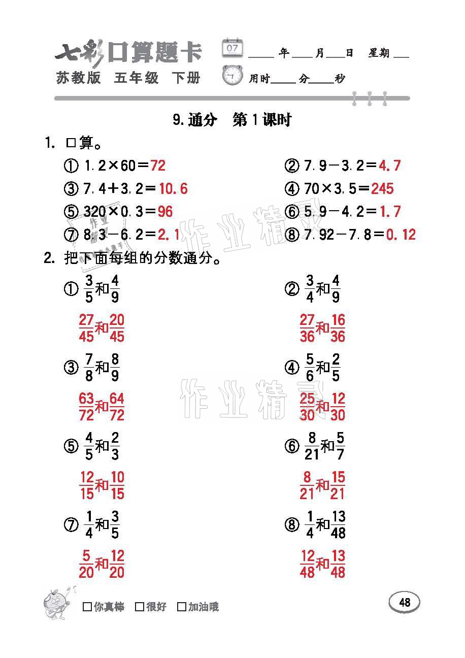 注:目前有些书本章节名称可能整理的还不是很完善,但都是按照顺序排列的,请同学们按照顺序仔细查找。练习册 2021年七彩口算题卡五年级数学下册苏教版 答案主要是用来给同学们做完题方便对答案用的,请勿直接抄袭。