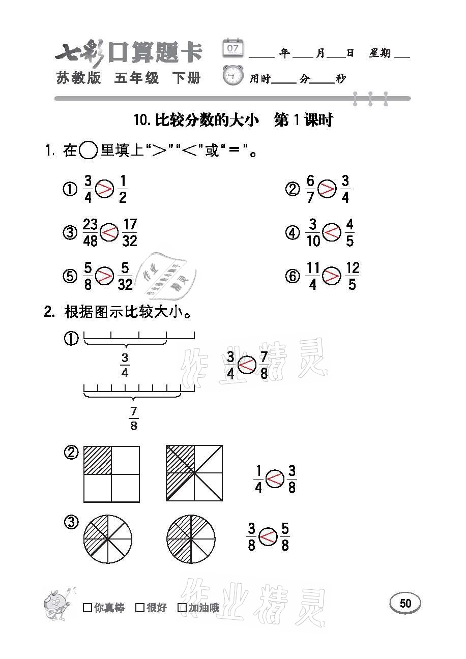注:目前有些书本章节名称可能整理的还不是很完善,但都是按照顺序排列的,请同学们按照顺序仔细查找。练习册 2021年七彩口算题卡五年级数学下册苏教版 答案主要是用来给同学们做完题方便对答案用的,请勿直接抄袭。