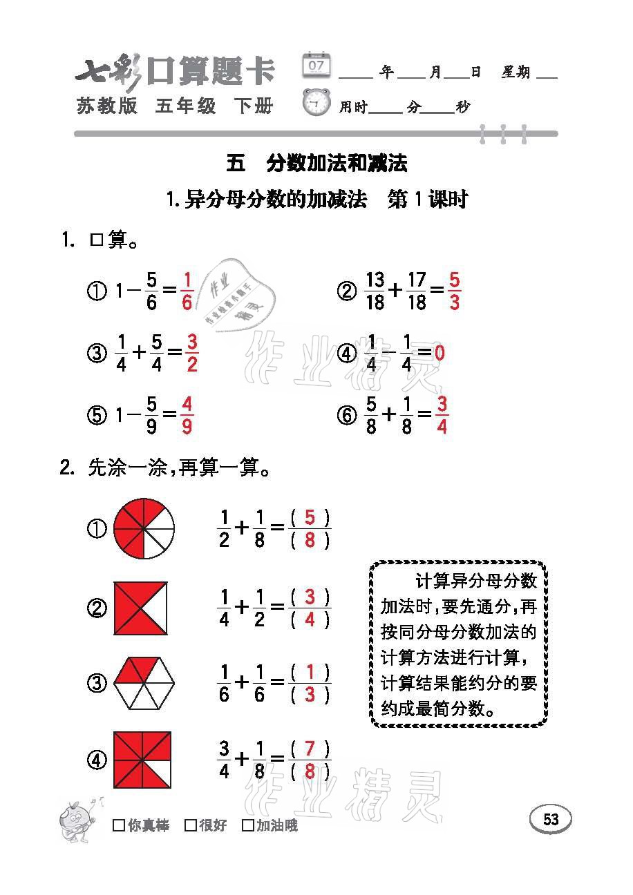 注:目前有些书本章节名称可能整理的还不是很完善,但都是按照顺序排列的,请同学们按照顺序仔细查找。练习册 2021年七彩口算题卡五年级数学下册苏教版 答案主要是用来给同学们做完题方便对答案用的,请勿直接抄袭。