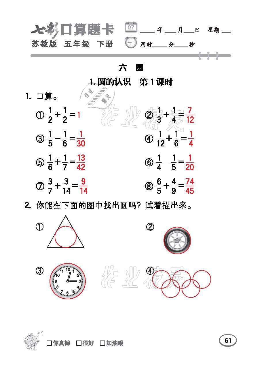 注:目前有些书本章节名称可能整理的还不是很完善,但都是按照顺序排列的,请同学们按照顺序仔细查找。练习册 2021年七彩口算题卡五年级数学下册苏教版 答案主要是用来给同学们做完题方便对答案用的,请勿直接抄袭。