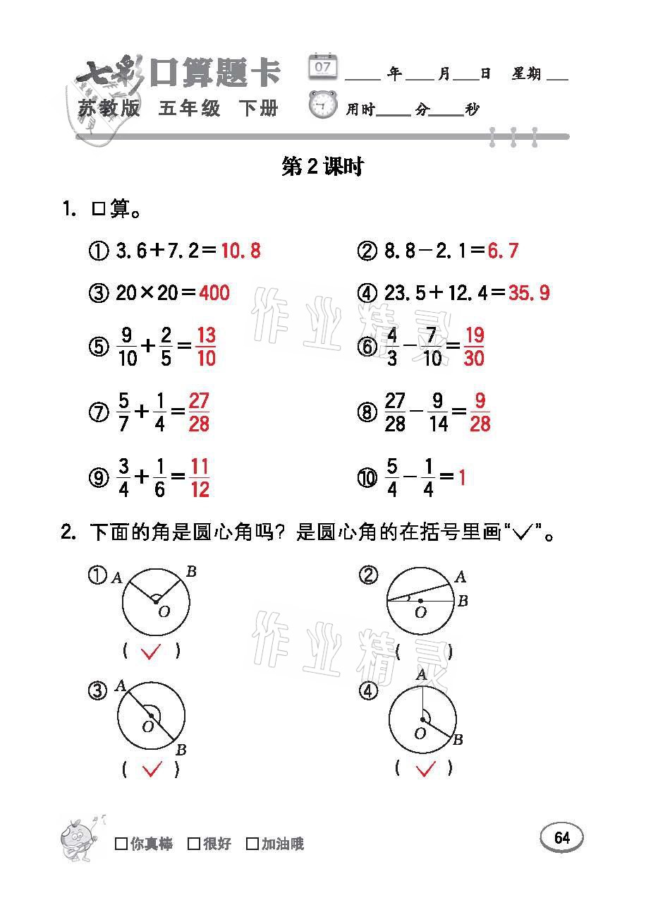 注:目前有些书本章节名称可能整理的还不是很完善,但都是按照顺序排列的,请同学们按照顺序仔细查找。练习册 2021年七彩口算题卡五年级数学下册苏教版 答案主要是用来给同学们做完题方便对答案用的,请勿直接抄袭。
