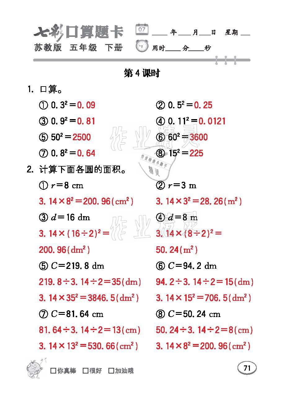 注:目前有些书本章节名称可能整理的还不是很完善,但都是按照顺序排列的,请同学们按照顺序仔细查找。练习册 2021年七彩口算题卡五年级数学下册苏教版 答案主要是用来给同学们做完题方便对答案用的,请勿直接抄袭。