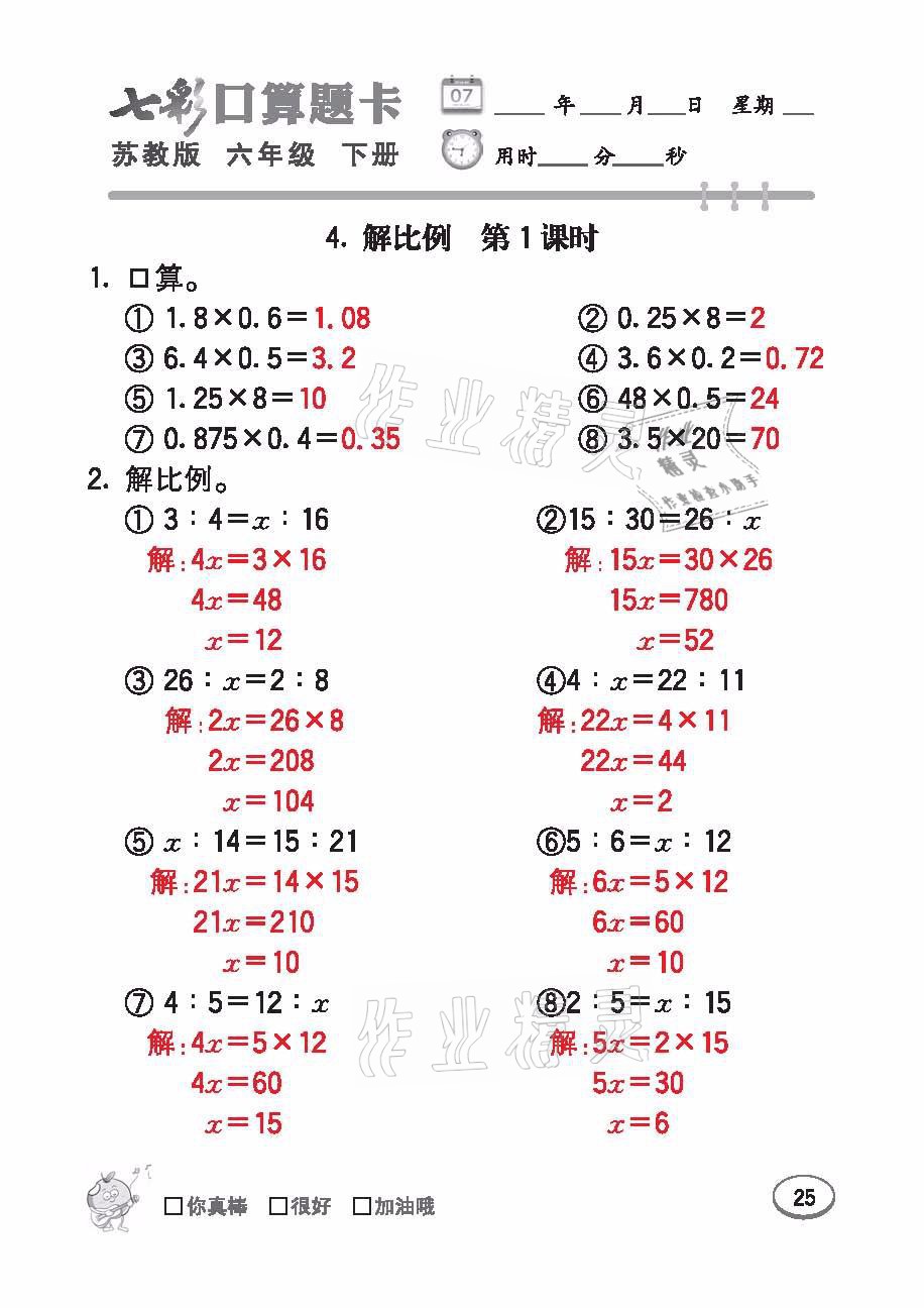 注:目前有些书本章节名称可能整理的还不是很完善,但都是按照顺序排列的,请同学们按照顺序仔细查找。练习册 2021年七彩口算题卡六年级数学下册苏教版 答案主要是用来给同学们做完题方便对答案用的,请勿直接抄袭。