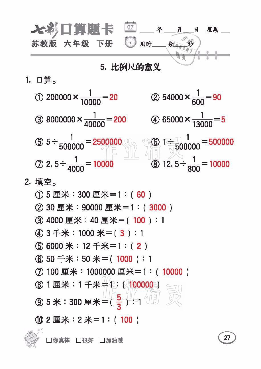 注:目前有些书本章节名称可能整理的还不是很完善,但都是按照顺序排列的,请同学们按照顺序仔细查找。练习册 2021年七彩口算题卡六年级数学下册苏教版 答案主要是用来给同学们做完题方便对答案用的,请勿直接抄袭。