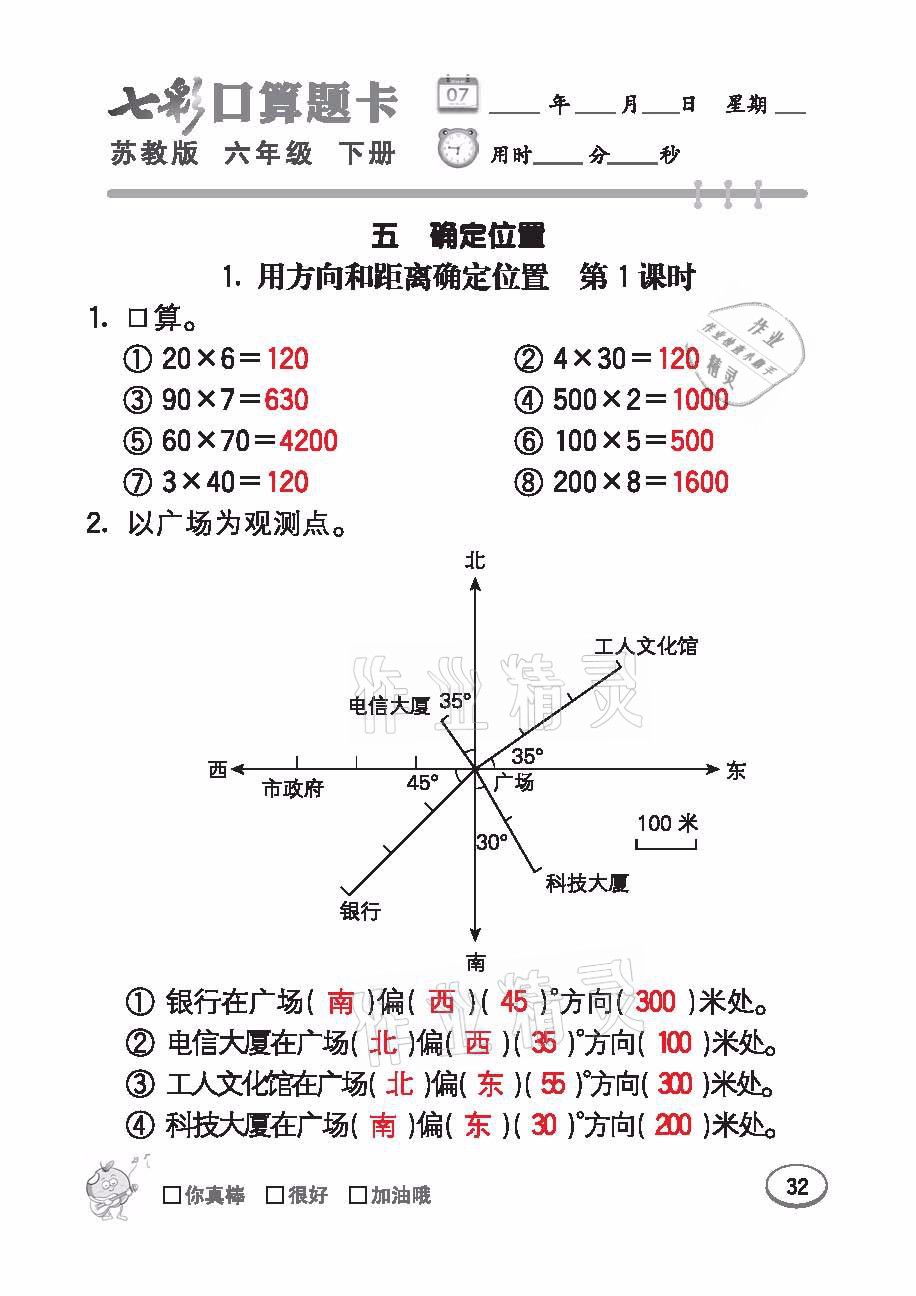 注:目前有些书本章节名称可能整理的还不是很完善,但都是按照顺序排列的,请同学们按照顺序仔细查找。练习册 2021年七彩口算题卡六年级数学下册苏教版 答案主要是用来给同学们做完题方便对答案用的,请勿直接抄袭。
