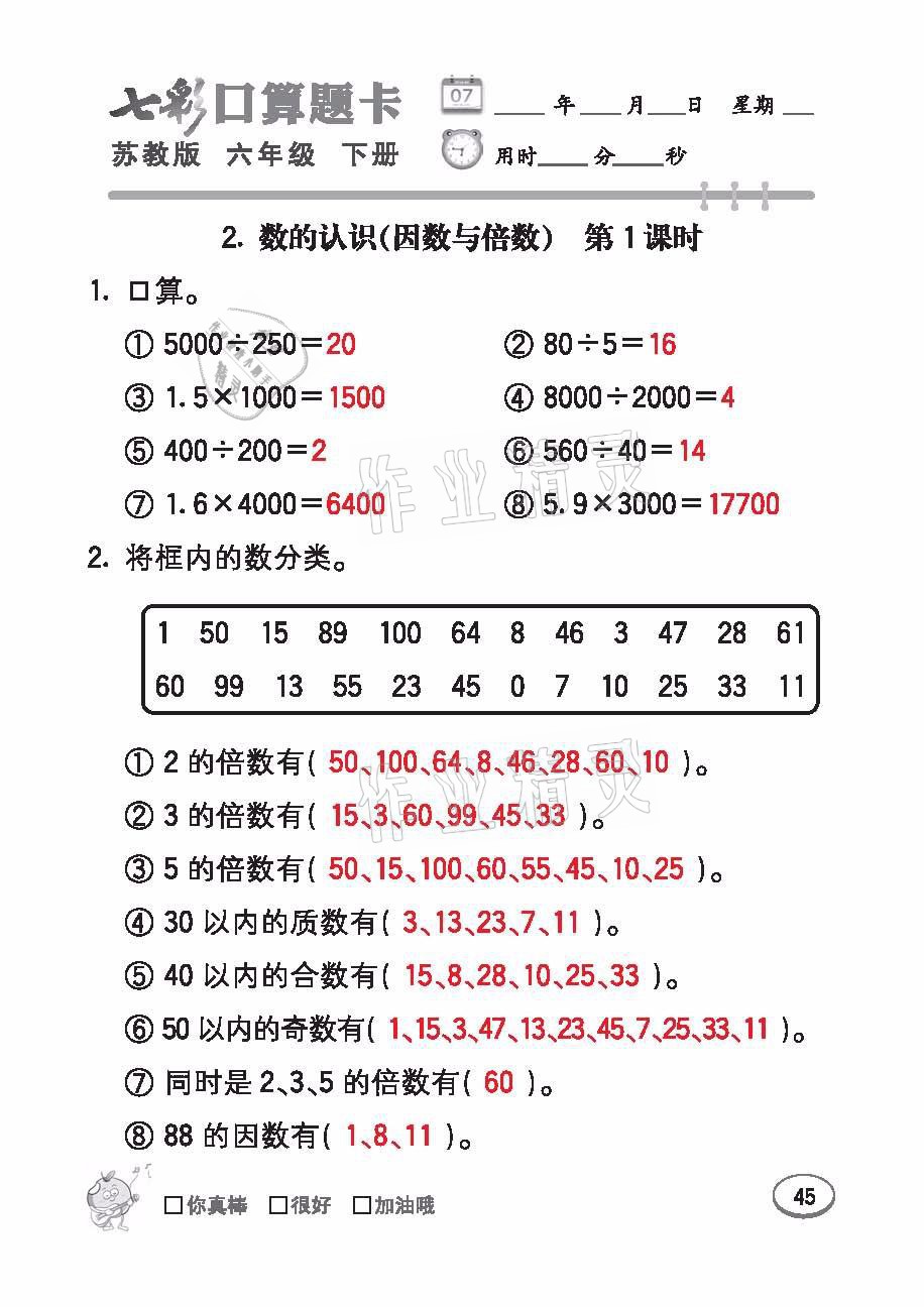 注:目前有些书本章节名称可能整理的还不是很完善,但都是按照顺序排列的,请同学们按照顺序仔细查找。练习册 2021年七彩口算题卡六年级数学下册苏教版 答案主要是用来给同学们做完题方便对答案用的,请勿直接抄袭。