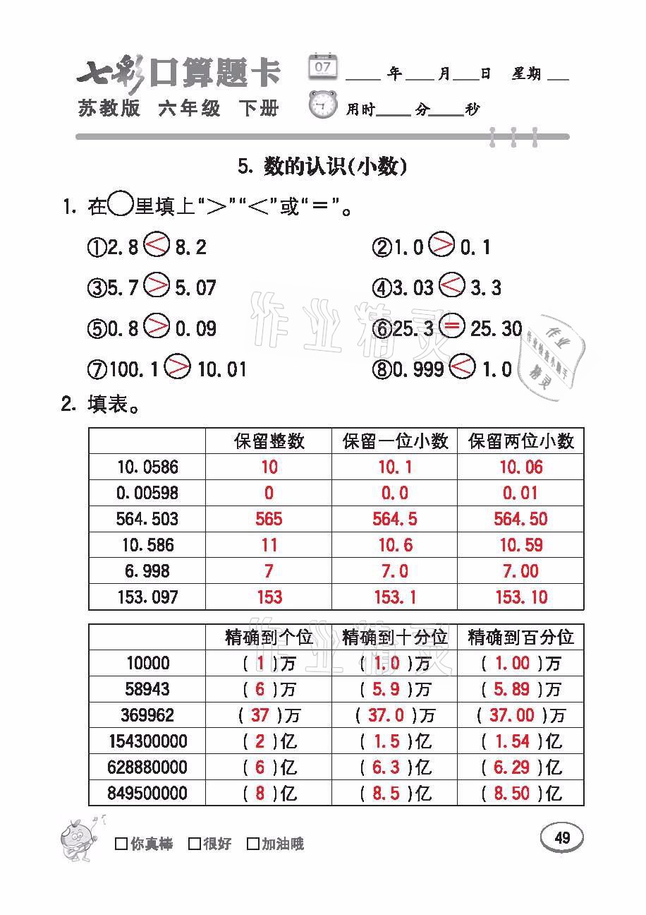 注:目前有些书本章节名称可能整理的还不是很完善,但都是按照顺序排列的,请同学们按照顺序仔细查找。练习册 2021年七彩口算题卡六年级数学下册苏教版 答案主要是用来给同学们做完题方便对答案用的,请勿直接抄袭。