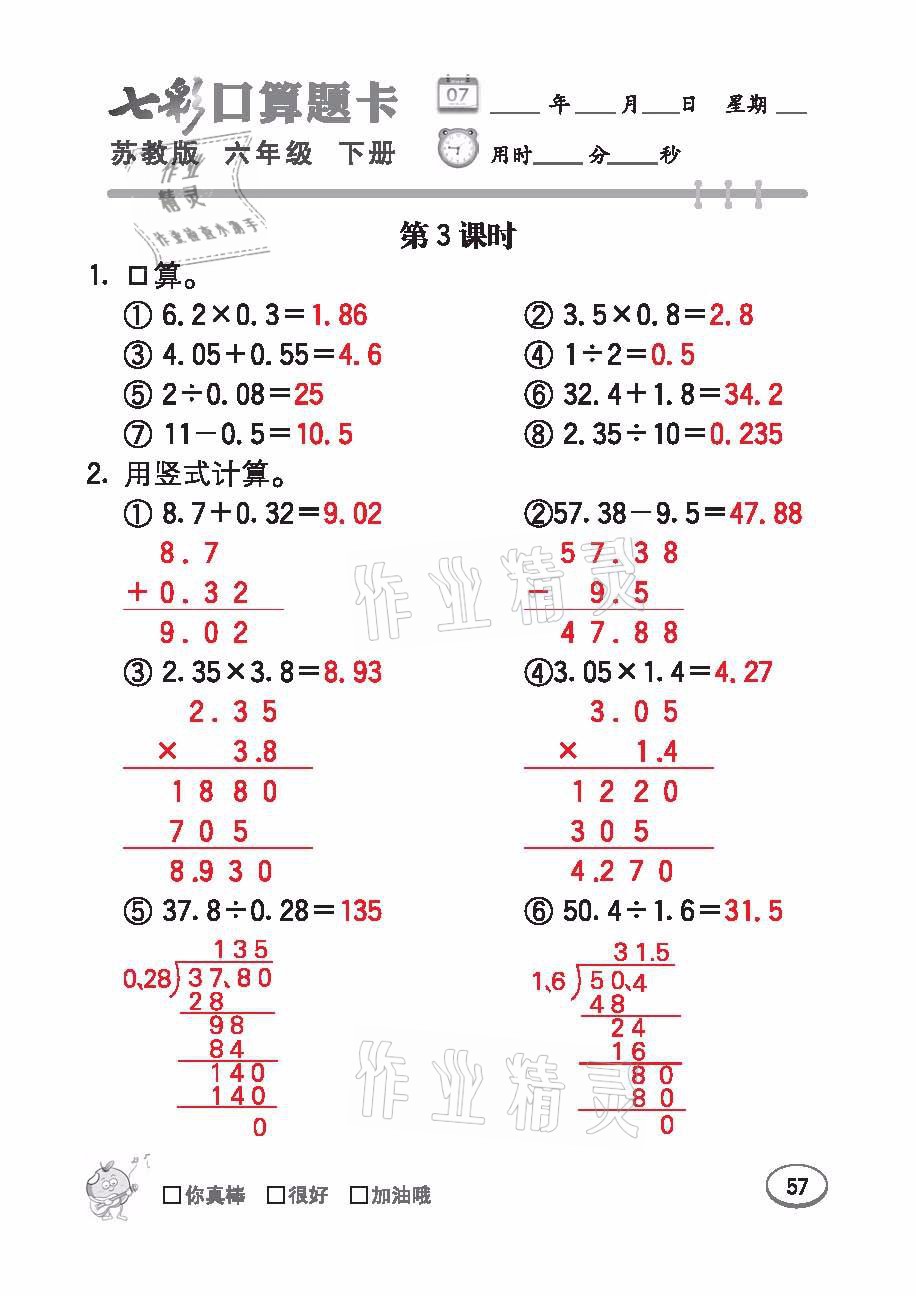 注:目前有些书本章节名称可能整理的还不是很完善,但都是按照顺序排列的,请同学们按照顺序仔细查找。练习册 2021年七彩口算题卡六年级数学下册苏教版 答案主要是用来给同学们做完题方便对答案用的,请勿直接抄袭。