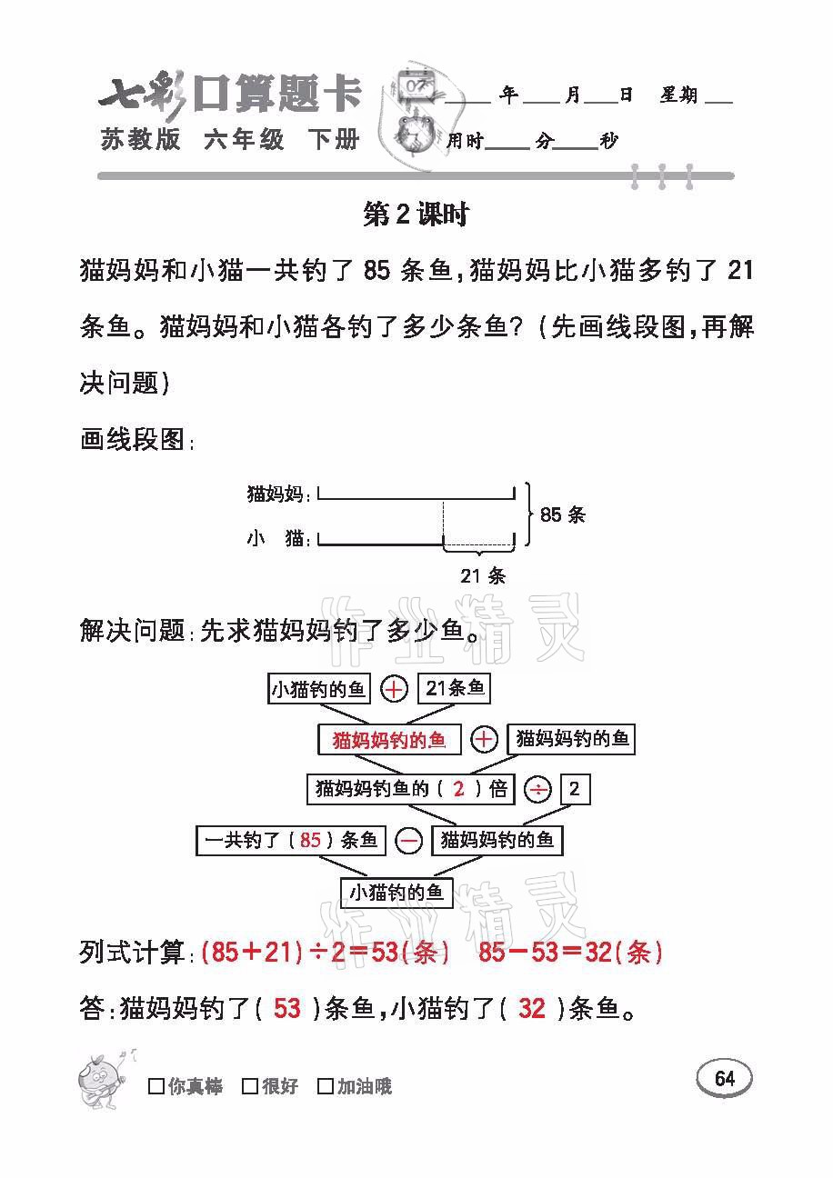 注:目前有些书本章节名称可能整理的还不是很完善,但都是按照顺序排列的,请同学们按照顺序仔细查找。练习册 2021年七彩口算题卡六年级数学下册苏教版 答案主要是用来给同学们做完题方便对答案用的,请勿直接抄袭。
