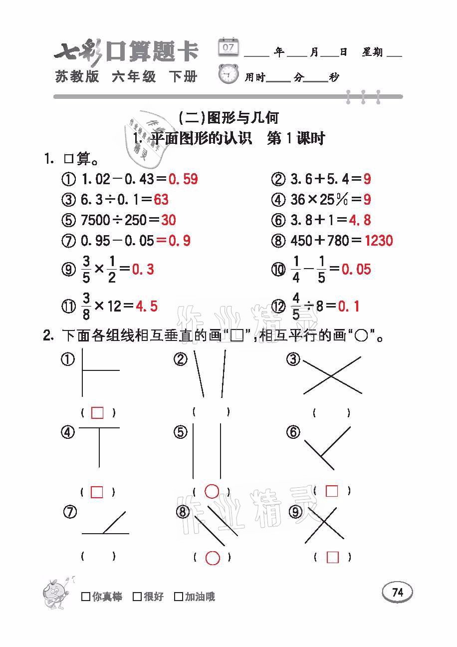 注:目前有些书本章节名称可能整理的还不是很完善,但都是按照顺序排列的,请同学们按照顺序仔细查找。练习册 2021年七彩口算题卡六年级数学下册苏教版 答案主要是用来给同学们做完题方便对答案用的,请勿直接抄袭。