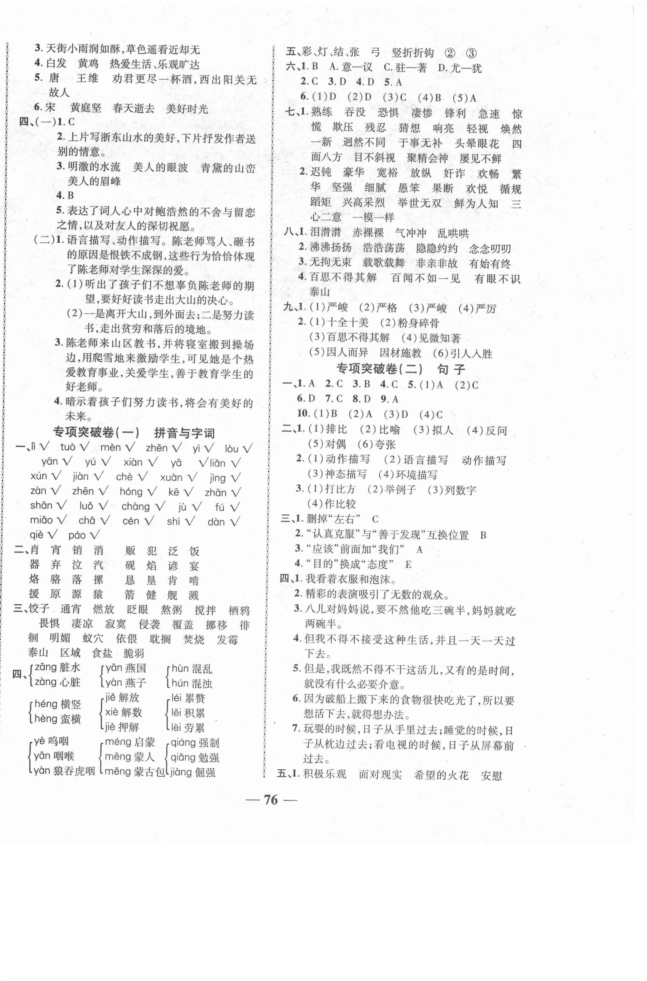 注:目前有些书本章节名称可能整理的还不是很完善,但都是按照顺序排列的,请同学们按照顺序仔细查找。练习册 2021年云南本土名校金卷六年级语文下册人教版云南专版 答案主要是用来给同学们做完题方便对答案用的,请勿直接抄袭。