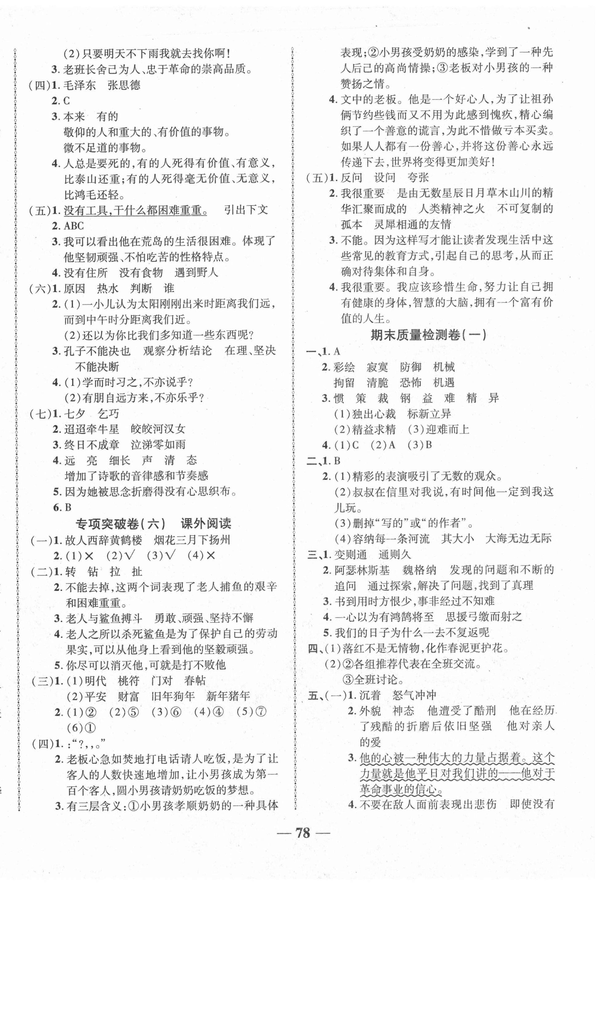 注:目前有些书本章节名称可能整理的还不是很完善,但都是按照顺序排列的,请同学们按照顺序仔细查找。练习册 2021年云南本土名校金卷六年级语文下册人教版云南专版 答案主要是用来给同学们做完题方便对答案用的,请勿直接抄袭。