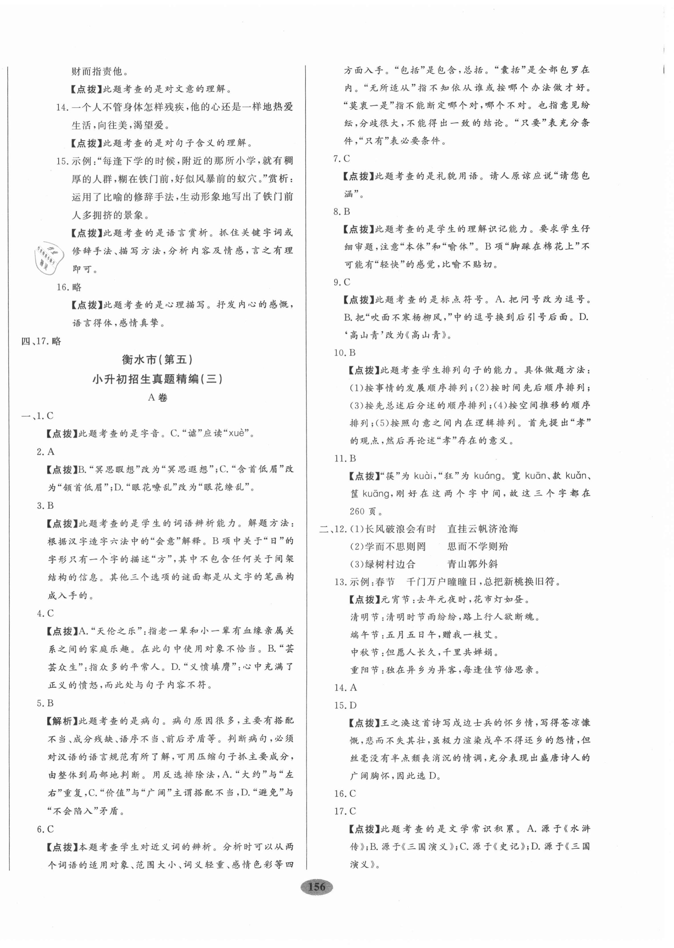注:目前有些书本章节名称可能整理的还不是很完善,但都是按照顺序排列的,请同学们按照顺序仔细查找。练习册 2021年小升初河北名校招生考题大集结语文 答案主要是用来给同学们做完题方便对答案用的,请勿直接抄袭。